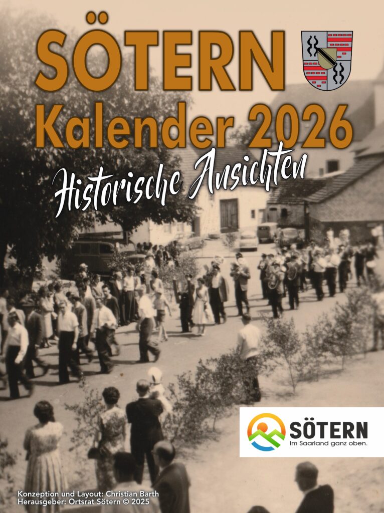 Der beliebte „Sötern-Kalender 2026“ mit historischen Motiven ist ab sofort für 5 € erhältlich. Der Reinerlös aus dem Verkauf geht wieder komplett ins Ortsratsbudget. Der Kalender kann in gewünschter Anzahl bei Thomas Georgi oder bei mir erworben werden. Außerdem wird der Kalender beim Söterner Weihnachtsmarkt an der Bude des Theatervereins zum Kauf angeboten. Christian Barth, […]